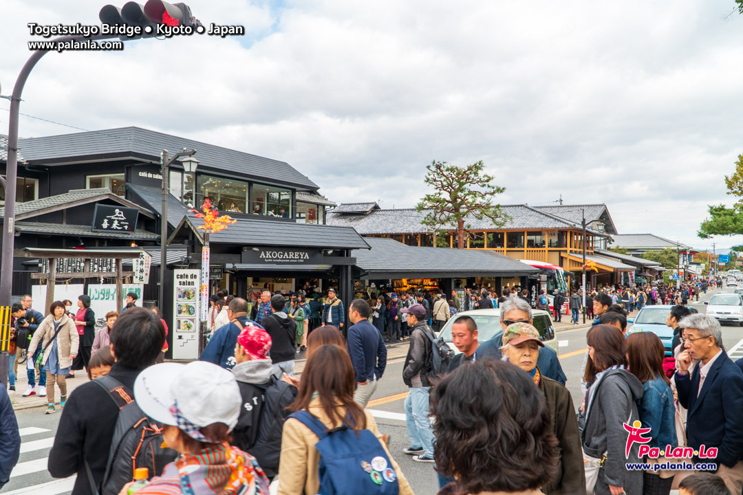นักท่องเที่ยวเดินทางมาเที่ยวกันอย่างคึกคักมองจากบนสะพานโทเง็ตสึเคียว
