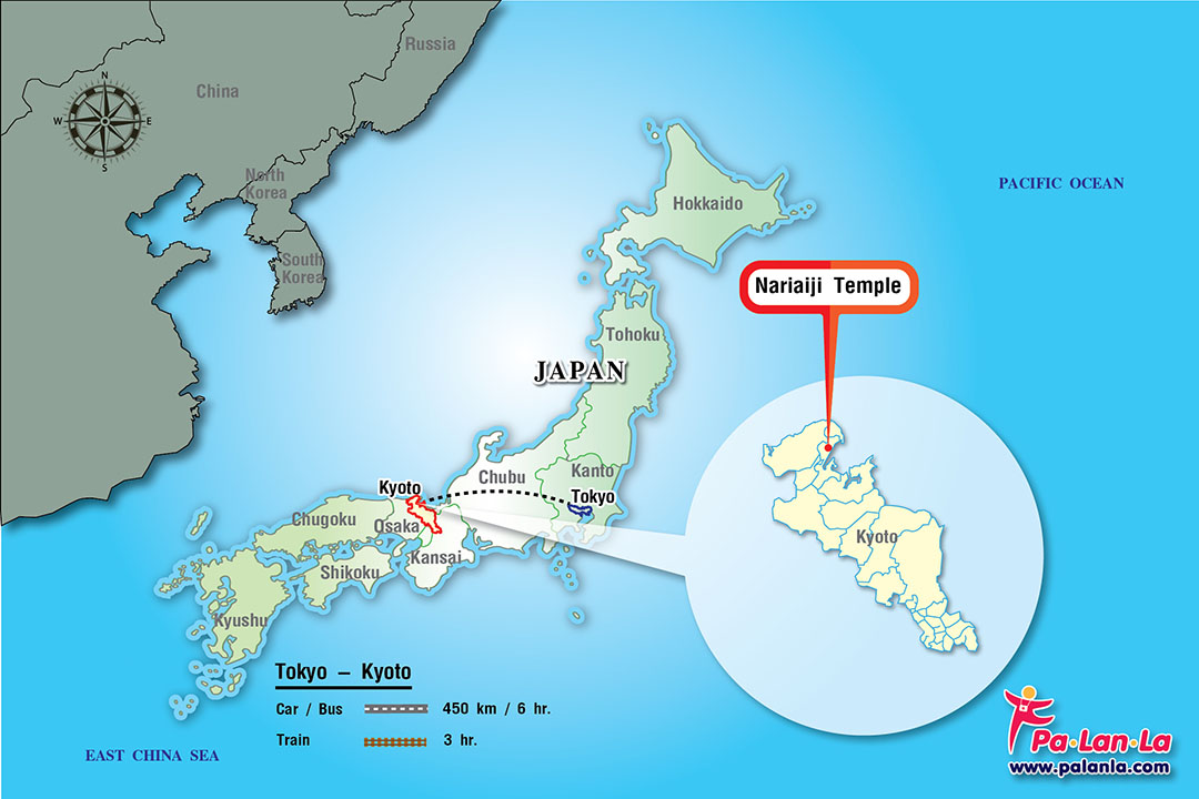วัดนาริอาอิจิ เป็นวัดพุทธนิกายชินกอน (Shingon Sect) ตั้งอยู่แถบอามาโนะฮาชิดาเตะ(Amanohashidate) ในเกียวโต (Kyoto) วัดเก่าแก่อายุหลายร้อยปีแห่งนี้ ในอดีตไม่ได้ตั้งอยู่บนพื้นที่ปัจจุบัน ทว่าตั้งอยู่ใกล้ยอดเขา Tsuzumigatake แต่ภายหลังจากเกิดเหตุภูเขาถล่มเมื่อ 250 ปีก่อนจึงได้มีการย้ายมาตั้งอยู่ที่ปัจจุบัน