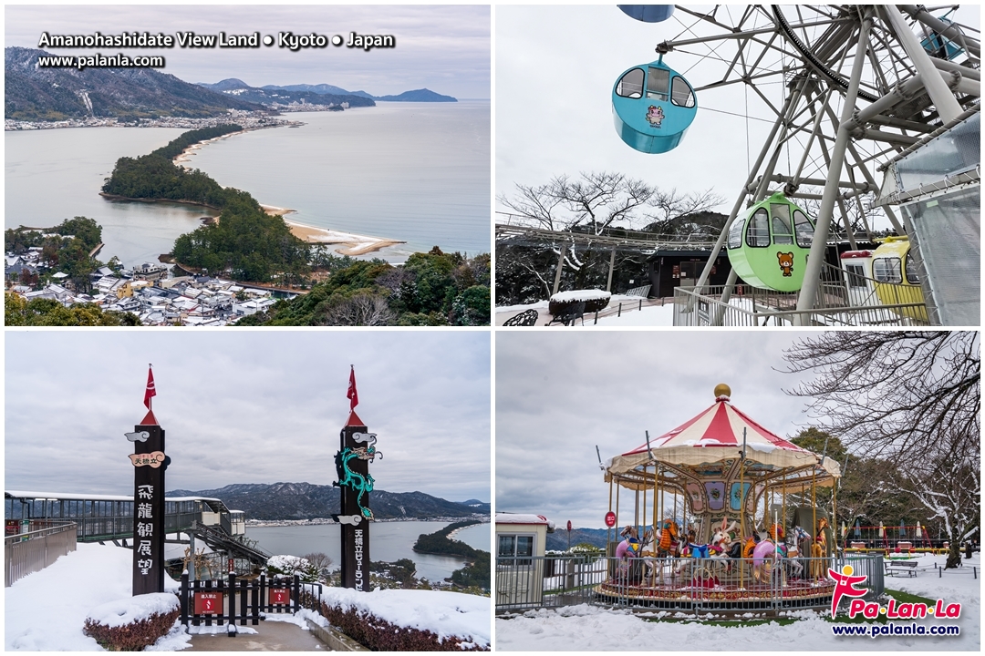 การเดินทาง : จากสถานี Kyoto Station ขึ้นรถสาย Kyoto Eki ไปลงป้าย Amanohashidate Eki mae ใช้เวลาเดินทางประมาณ 2 ชั่วโมง แล้วเดินต่ออีกประมาณ 5 นาทีเพื่อไปยังอามาโนะฮาชิดาเตะ วิวแลนด์