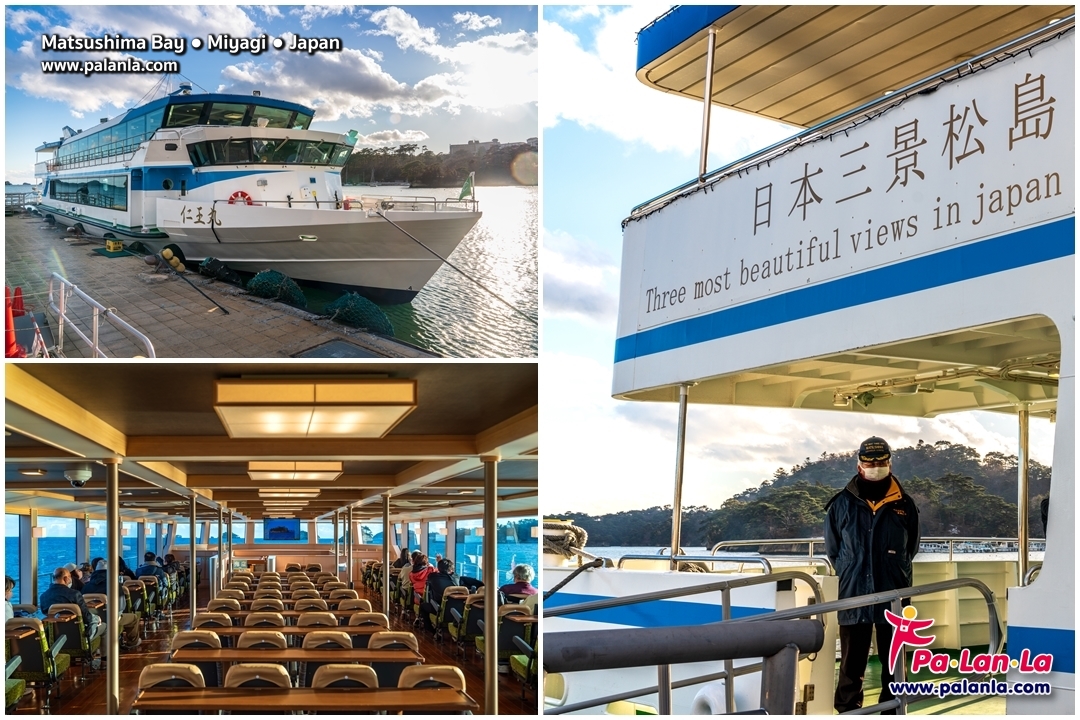 การเดินทาง : จากสถานี JR Sendai โดยสารรถไฟสาย JR Senseki Line ไปลงสถานี Matsushimakaigan ใช้เวลา 40 นาที จากนั้นเดิน 5 นาทีไปยังท่าเรือท่องเที่ยว ซึ่งสามารถซื้อตั๋วล่องเรือรอบอ่าวมัตสึชิมะได้ โดยเรือมี 3 รอบต่อวัน เวลา 5.00, 9.00, 13.00 น.