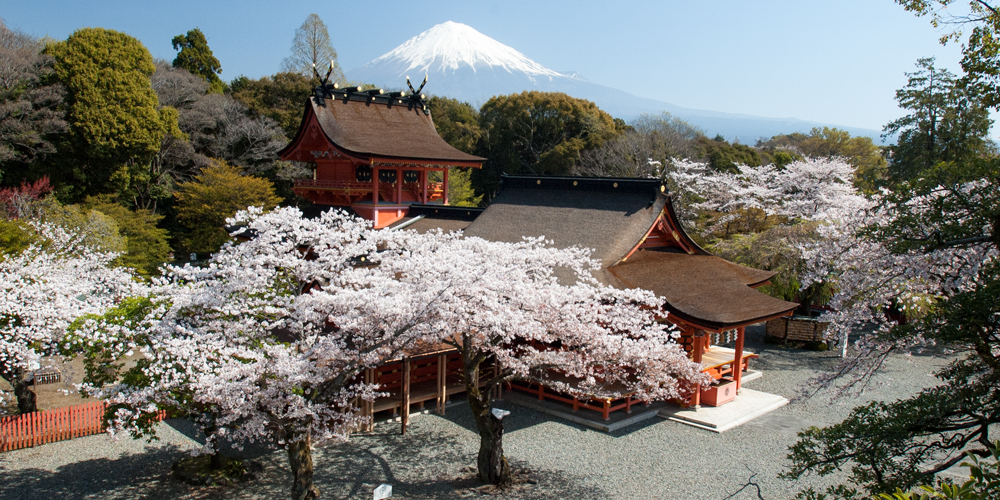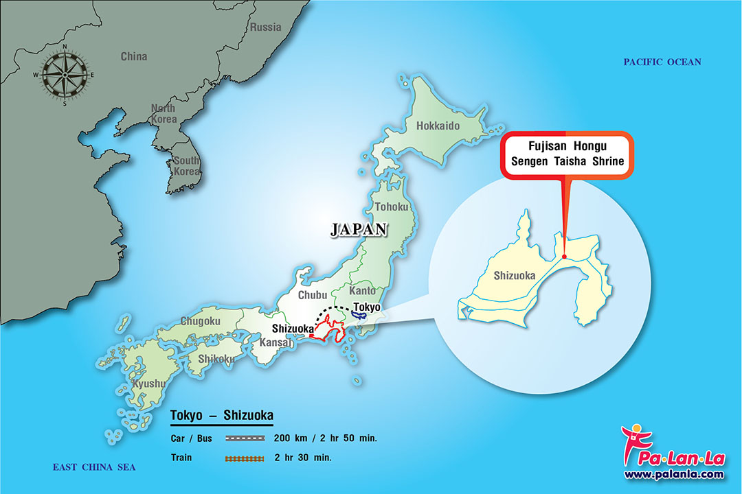 ศาลเจ้าฟูจิซัง ฮอนกู เซนเง็น ไทฉะ ตั้งอยู่ทางทิศตะวันตกเฉียงใต้ของฐานภูเขาไฟฟูจิ จังหวัดชิซูโอกะ