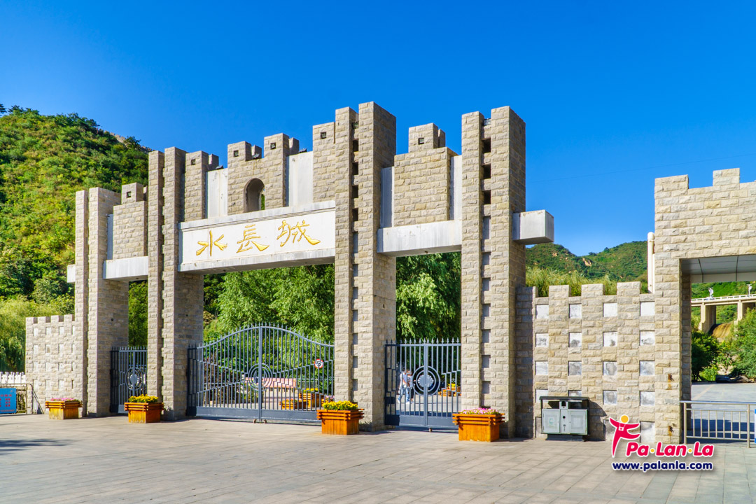 ทางเข้าสู่กำแพงเมืองจีนหวงฮวาเฉิงซึ่งเป็นแหล่งท่องเที่ยวสำคัญในปัจจุบัน