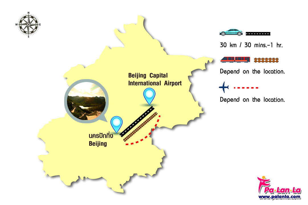 - เครื่องบิน นักท่องเที่ยวสามารถใช้บริการท่าอากาศยานนานาชาติปักกิ่ง หรือ Beijing Capital International Airport (BCIA) ซึ่งเป็นสนามบินขนาดใหญ่และได้ชื่อว่าเป็นประตูอันดับหนึ่งสู่ประเทศจีน ซึ่งหลังจากมาถึงสนามบินแล้ว นักท่องเที่ยวสามารถเลือกใช้บริการชัตเตอร์บัสจากสนามบินเข้าสู่ตัวเมืองได้ โดยสามารถดูรายละเอียดเส้นทาง , ตารางเวลา รวมถึงค่าบริการชัตเตอร์บัสไปจุดหมายต่างๆเพิ่มเติมได้ที่ http://en.bcia.com.cn/traffic/airbus/index.shtml