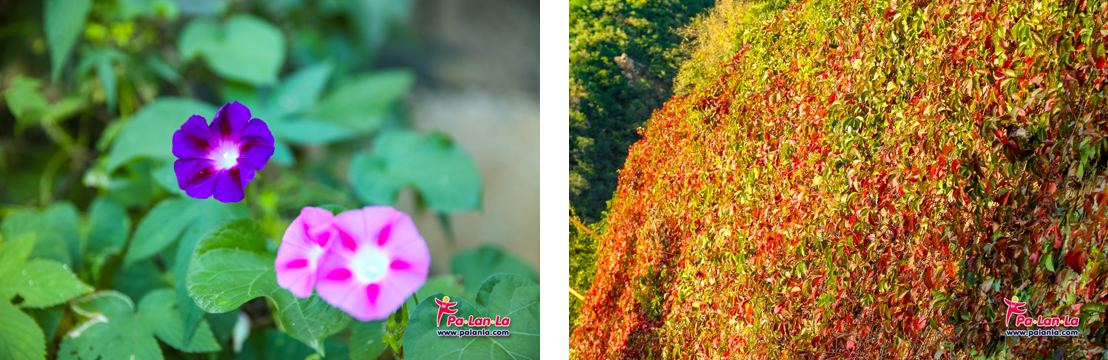 ดอกไม้และใบไม้บางส่วนที่เริ่มก้าวเข้าสู่ช่วงฤดูใบไม้ร่วง