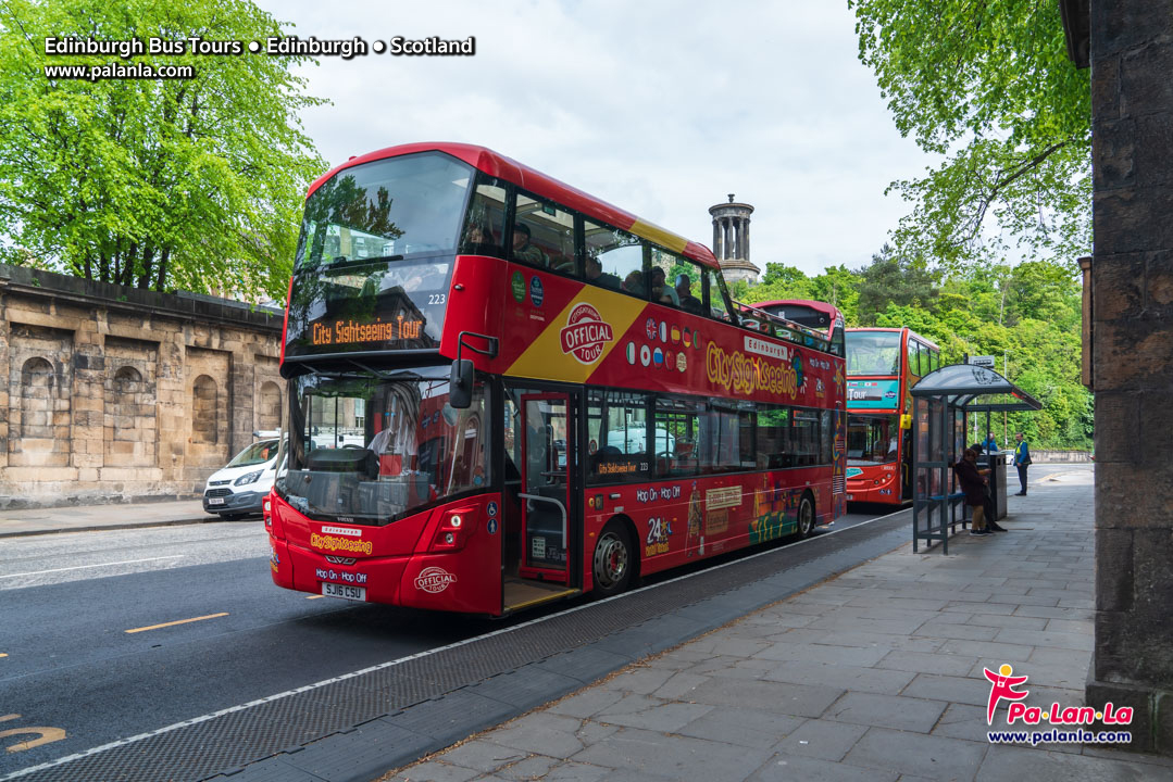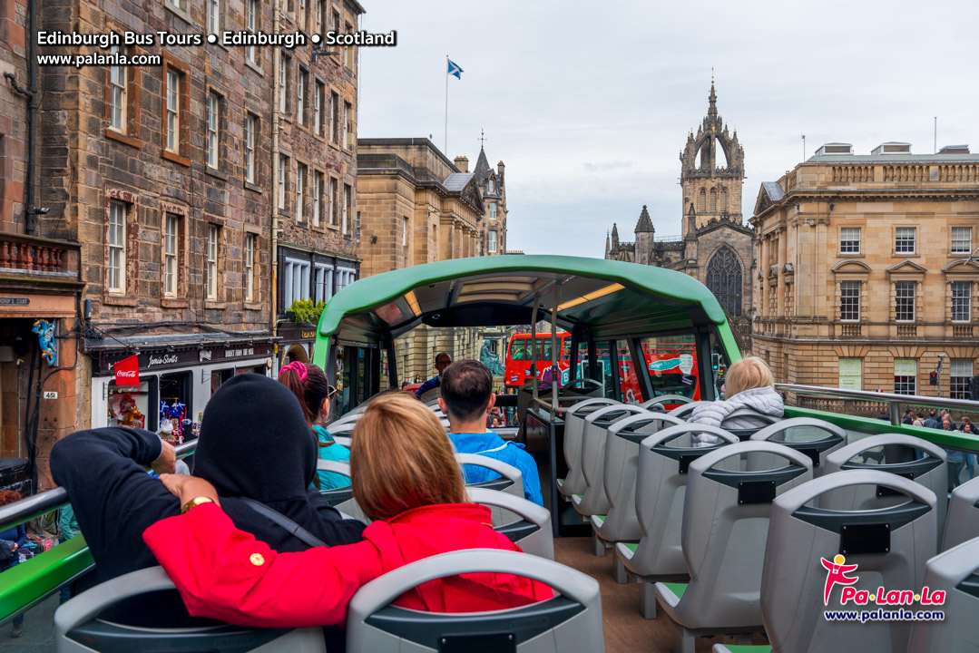 นั่งรถบัสเที่ยวชมรอบเมืองเอดินเบอระ (Edinburgh Bus Tours) เป็นบริการทัวร์รอบเมืองเอดินเบอระด้วยรถบัสสองชั้นสีแดง ที่จะพานักท่องเที่ยวไปสำรวจสถานที่ท่องเที่ยวยอดนิยมต่างๆ และชมแลนด์มาร์กอันยิ่งใหญ่ไปรอบๆ เมือง พร้อมหูฟังที่สามารถเลือกเสียงบรรยายได้ถึง 9 ภาษา โดยเริ่มต้นการเดินทางที่จัตุรัสเซนต์แอนดรูว์ และสามารถขึ้นลงได้ถึง 13 ป้าย
