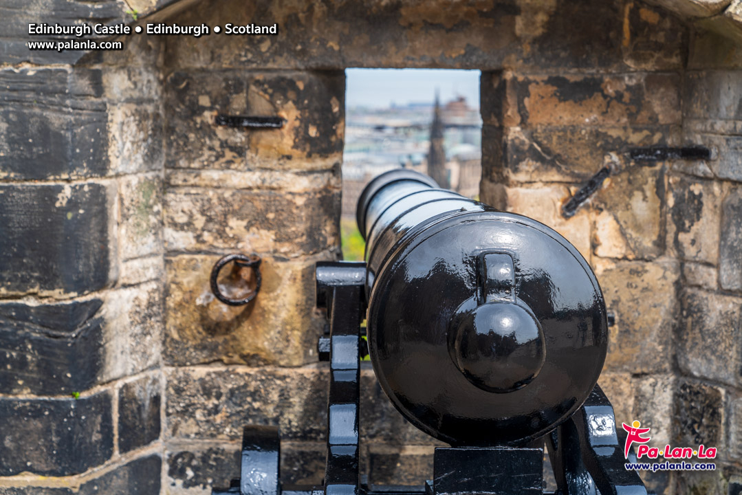 ไฮไลท์ของปราสาทแห่งนี้คือระบบการป้องกันปราสาทที่มีการพัฒนามาเป็นเวลาหลายร้อยปี อาวุธที่ยิ่งใหญ่ในสมัยนั้นคือ ปืนใหญ่โบราณมอนส์เมก (Mons Meg) ซึ่งเป็นหนึ่งในปืนใหญ่ยุคกลางที่ยิ่งใหญ่ที่สุดเท่าที่เคยมีมา และถูกมอบให้กับกษัตริย์เจมส์ที่ 2 แห่งสกอตแลนด์ในปีค.ศ.1457 ปืนใหญ่นี้มีน้ำหนักมากกว่า 6 ตัน และยิงได้ไกลประมาณ 2 ไมล์ นอกจากนี้ ยังมีการติดตั้งฐานปืนใหญ่เอาไว้รอบปราสาทอีกด้วย โดยชื่อว่าฐาน Half Moon Battery และ Argyle Battery