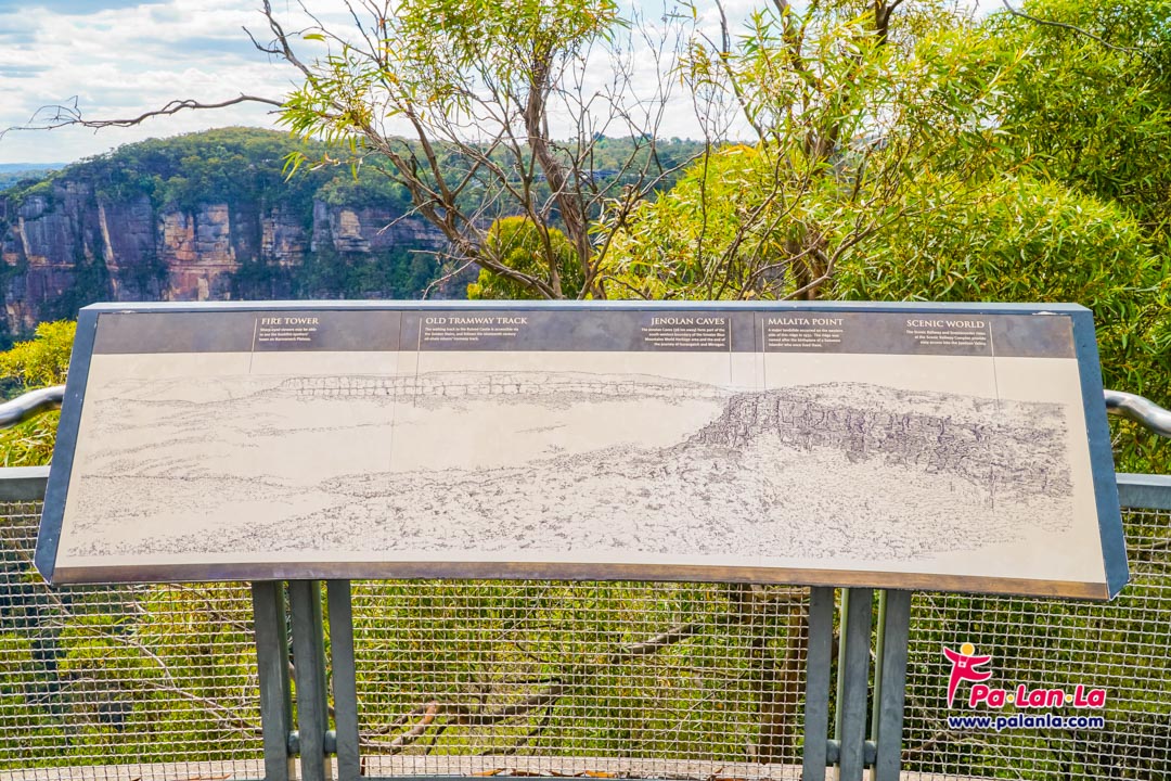 ป้ายจำลองบริเวณต่างๆ ของบลูเมาเทนส์จากจุดที่เรามองเห็น