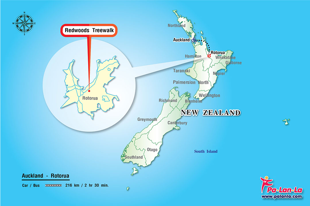 แผนที่ตั้ง เรดวูดส์ทรีวอล์ค (Redwoods Treewalk) เกาะเหนือ ประเทศนิวซีแลนด์