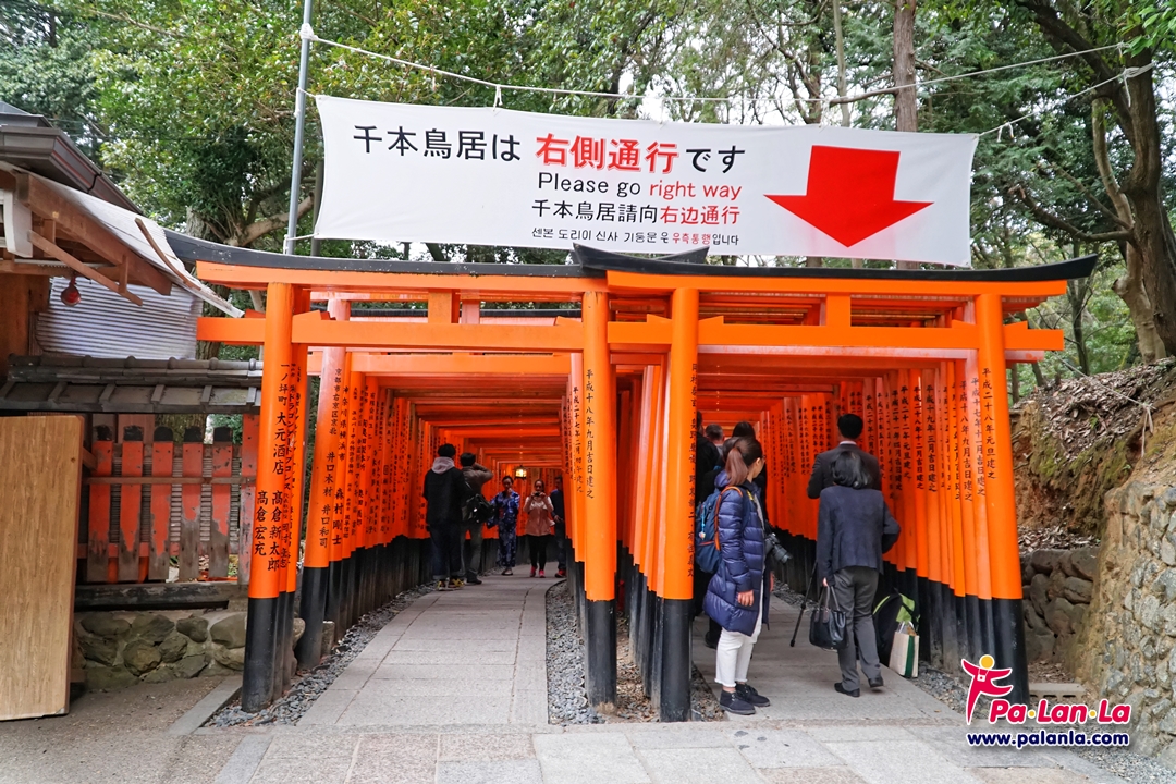 นอกจากนี้ เส้นทางเดินบางช่วงภายในศาลเจ้าอาจมีการแบ่งเป็นสองทาง โดยเส้นทางหนึ่งสำหรับเดินขึ้น และอีกเส้นทางหนึ่งสำหรับเดินลง นักท่องเที่ยวควรเดินไปตามเส้นทางที่กำหนดไว้ ไม่ควรเดินสวนเข้าไปในเส้นทางอื่นเพื่อรักษาความเป็นระเบียบเรียบร้อยในการเดินชมสถานที่แห่งนี้