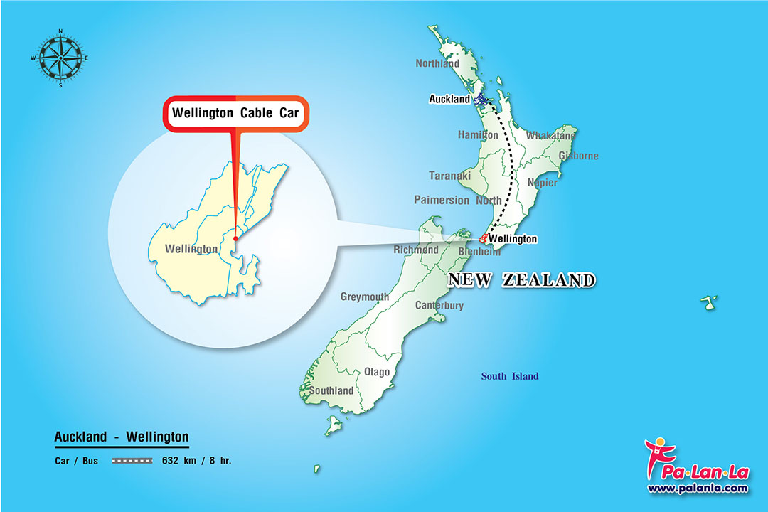 แผนที่ตั้ง เวลลิงตันเคเบิลคาร์ (Wellington Cable Car) เกาะเหนือ ประเทศนิวซีแลนด์