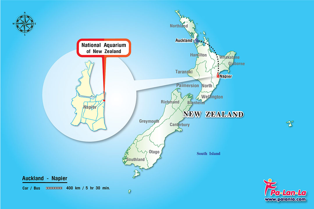 แผนที่ตั้ง พิพิธภัณฑ์สัตว์น้ำแห่งชาตินิวซีแลนด์ (National Aquarium of New Zealand) เกาะเหนือ ประเทศนิวซีแลนด์