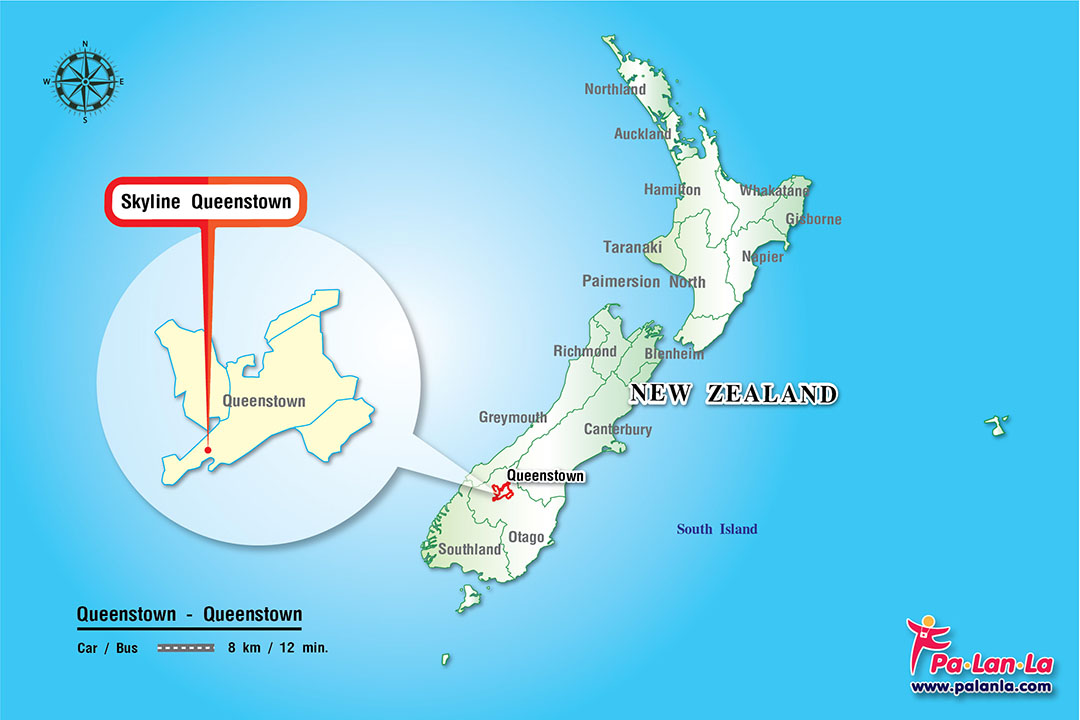 แผนที่ตั้ง สกายไลน์ควีนส์ทาวน์ (Skyline Queenstown) เกาะใต้ ประเทศนิวซีแลนด์