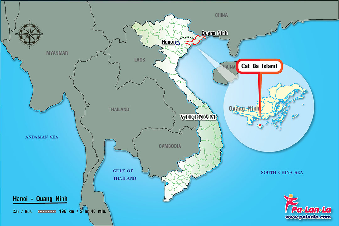 แผนที่ตั้ง เกาะกั๊ตบา (Cat Ba Island) จังหวัดกว๋างนิญ ประเทศเวียดนาม