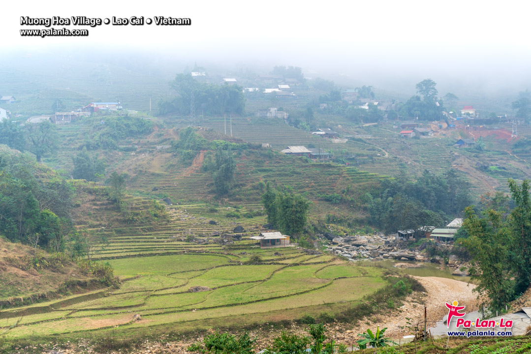 หมู่บ้านเมืองฮัว (Muong Hoa Village) เป็นหมู่บ้านชาวม้งที่ตั้งอยู่ในหุบเขาเมืองฮัวของเมืองซาปา ไฮไลท์ของที่นี่คือทิวทัศน์ทางธรรมชาติอันสวยงามของนาข้าวขั้นบันไดท่ามกลางภูเขาและป่าไม้ โดยจะมีความสวยงามที่สุดในช่วงเดือนกันยายนซึ่งเป็นช่วงที่รวงข้าวสุกงอมเป็นสีทองอร่ามไปทั้งไหล่เขาท่ามกลางภูเขาที่โอบล้อม และในบางช่วงเวลาจะมีสายหมอกปกคลุม เป็นจุดชมวิวธรรมชาติที่สวยงามและมีบรรยากาศที่เงียบสงบ นอกจากนี้ ที่นี่ยังมีร้านอาหารท้องถิ่นและที่พักแบบโฮมสเตย์ไว้รองรับนักท่องเที่ยวอีกด้วย