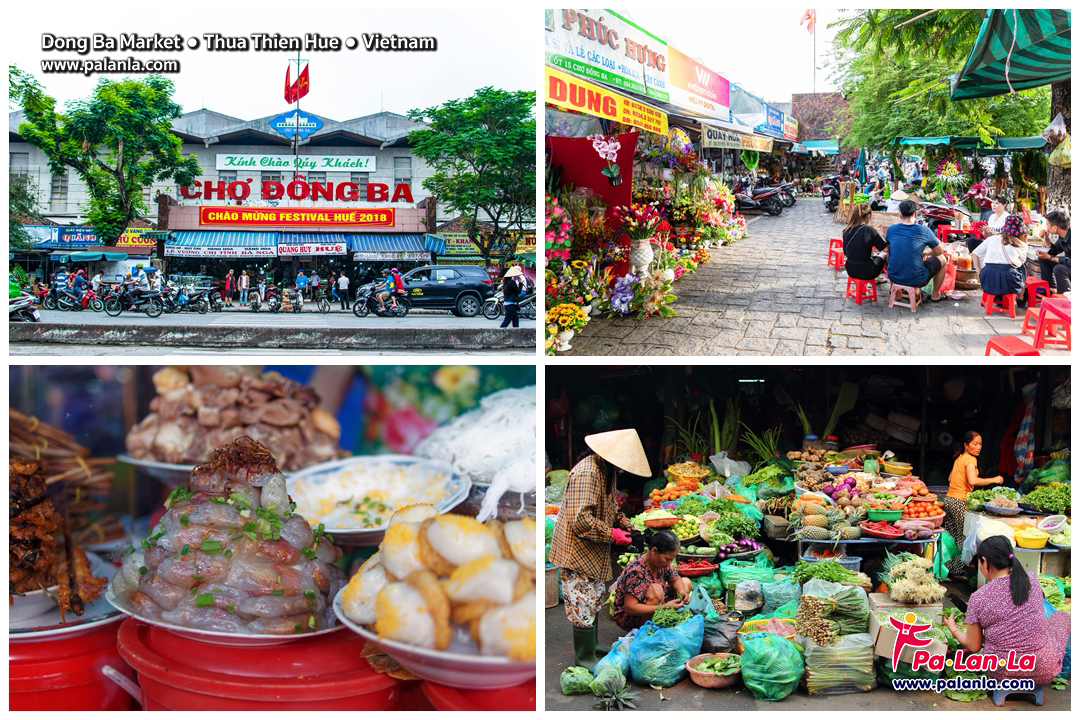 ตลาดดงบา (Dong Ba Market) ตั้งอยู่ในเว้ เป็นตลาดที่มีชื่อเสียงและเก่าแก่ที่สุดแห่งหนึ่งในเมืองเว้ เป็นตลาดที่มีชีวิตชีวาและคึกคัก ตลาดดงบามีชื่อเสียงในด้านแผงขายอาหารข้างทางแสนอร่อยและผลิตภัณฑ์สดใหม่ ที่ตลาดแห่งนี้นักท่องเที่ยวจะได้พบกับอาหารเวียดนามแท้ๆ เช่น บั๋นเคย (แพนเค้กสไตล์เว้) บุนโบเว้ (ซุปก๋วยเตี๋ยวเนื้อรสเผ็ด) และบั๊นล็อค (เกี๊ยวเวียดนาม) นอกจากของกินอร่อยๆ แล้วตลาดดงบายังเป็นศูนย์กลางของผัก สมุนไพร เครื่องเทศสด ผลไม้เมืองร้อนหลากหลายชนิด รวมถึงงานหัตถกรรมท้องถิ่น เสื้อผ้า และของฝาก นับเป็นสถานที่ที่ดีเยี่ยมในการดื่มด่ำกับวัฒนธรรมท้องถิ่นและสัมผัสบรรยากาศตลาดอันคึกคักของเมืองเว้
