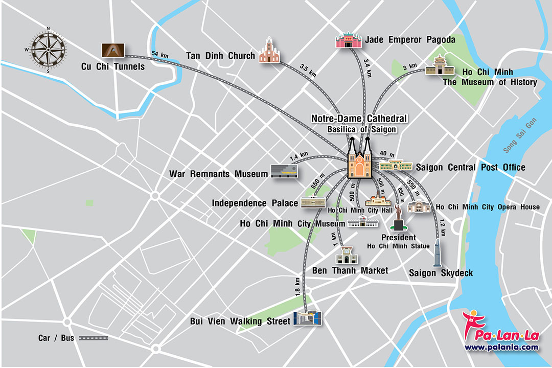 ข้อมูลการเดินทาง : จากท่าอากาศยานนานาชาติโฮจิมินห์ ไป มหาวิหารน็อทร์-ดามแห่งไซง่อน มีระยะทาง 7 กิโลเมตร ใช้เวลาในการเดินทางโดยรถยนต์ประมาณ 30 นาที