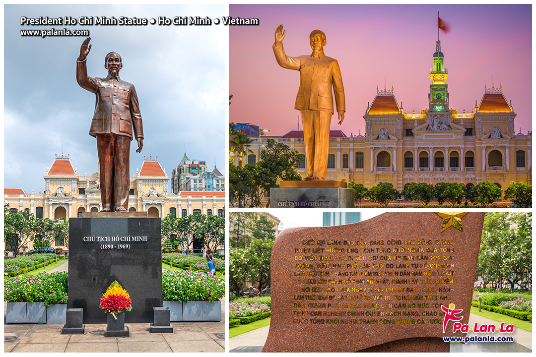 อนุสาวรีย์ประธานโฮจิมินห์ (President Ho Chi Minh Statue) อนุสาวรีย์ประธานโฮจิมินห์ เมืองโฮจิมินห์ ประเทศเวียดนาม ตั้งอยู่บริเวณหน้าศาลาว่าการนครโฮจิมินห์ บนถนนคนเดินเหงียนเว้ รูปปั้นประธานโฮจิมินห์ยืนตระหง่านในอิริยาบถยกมือขวา ด้วยท่าทางแห่งความเป็นผู้นำและความมุ่งมั่น เป็นสัญลักษณ์ของความเคารพและความชื่นชมอันยิ่งใหญ่ที่ชาวเวียดนามมีต่ออดีตประธานาธิบดีผู้ล่วงลับ ซึ่งมีบทบาทสำคัญในการต่อสู้เพื่อเอกราชและการรวมประเทศทำให้เวียดนามเป็นหนึ่งเดียวและเจริญรุ่งเรืองขึ้นมาได้
