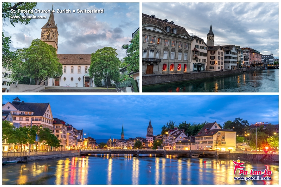 โบสถ์เซนต์ปีเตอร์ (St. Peter’s Church) ตั้งอยู่ติดกับเนินเขาลินเดนฮอฟ (Lindenhof Hill) สร้างขึ้นในศตวรรษที่ 13 เป็นโบสถ์คาทอลิกที่เก่าแก่ที่สุดในเมืองซูริค และยังเป็น 1 ใน 4 โบสถ์หลักของเมืองด้วย โบสถ์แห่งนี้สร้างด้วยสถาปัตยกรรมรูปแบบบาโรก (Baroque) ผสมกอธิค (Gothic) เป็นโบสถ์ที่งดงามทั้งด้านนอกและด้านในอาคาร จุดเด่นของโบสถ์เซนต์ปีเตอร์คือหน้าปัดนาฬิกาที่มีขนาดใหญ่ที่สุดในยุโรป ด้วยเส้นผ่านศูนย์กลางขนาด 8.7 เมตร นอกจากหอนาฬิกาแล้วโบสถ์เซนต์ปีเตอร์ยังมีไปป์ออร์แกน (Pipe organ) จากเมือง Strasbourg ประเทศฝรั่งเศส ที่ Mühleisen Manufacture d´orgues ได้นำเข้ามาไว้ในโบสถ์แห่งนี้เมื่อปีค.ศ.1974 ด้วย