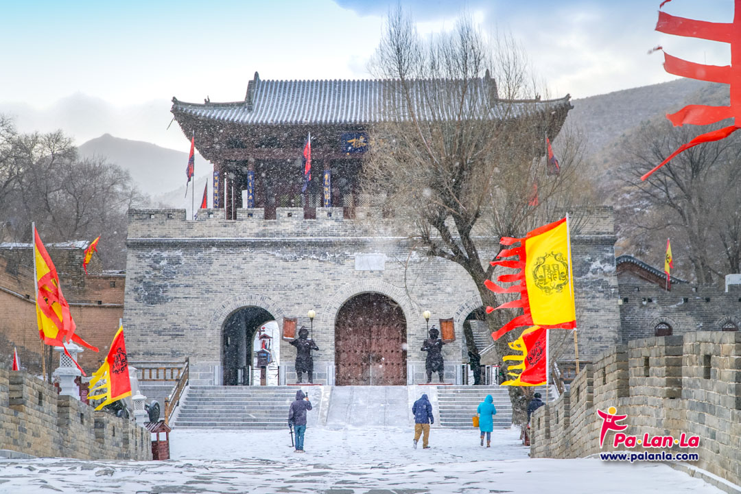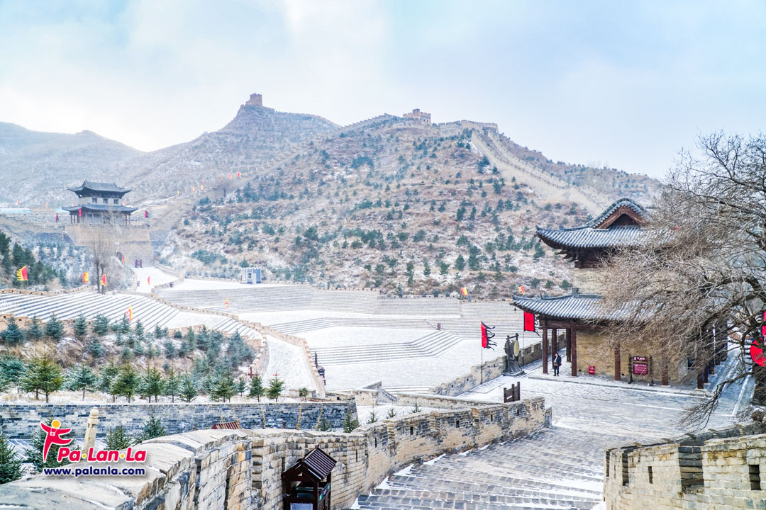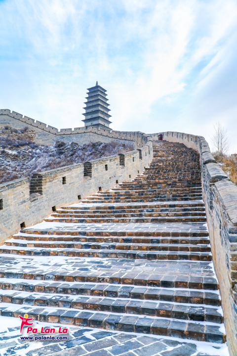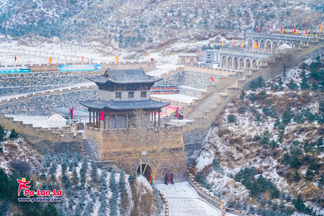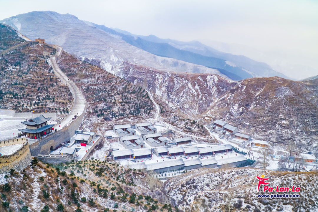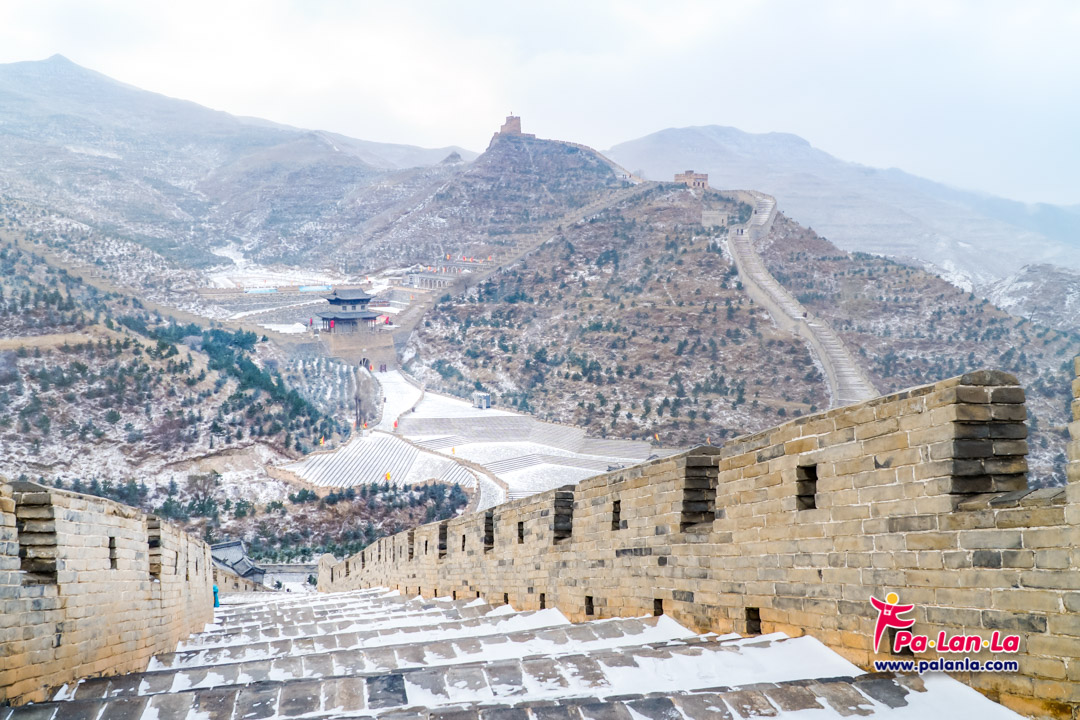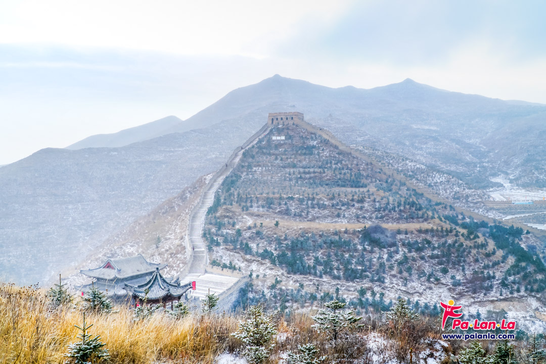 กำแพงเมืองจีนด่านเยี่ยนเหมินกวนในฤดูหนาวกับหิมะที่โปรยปราย