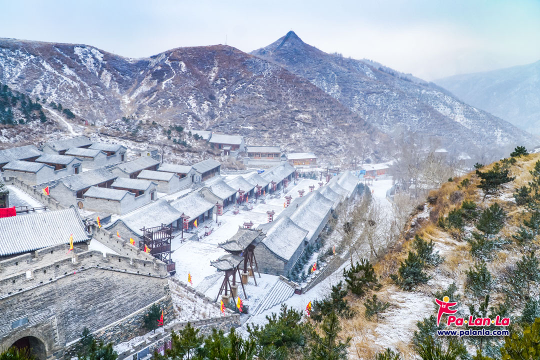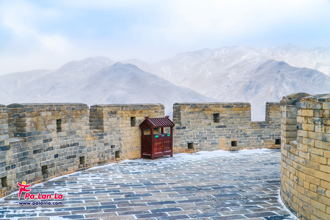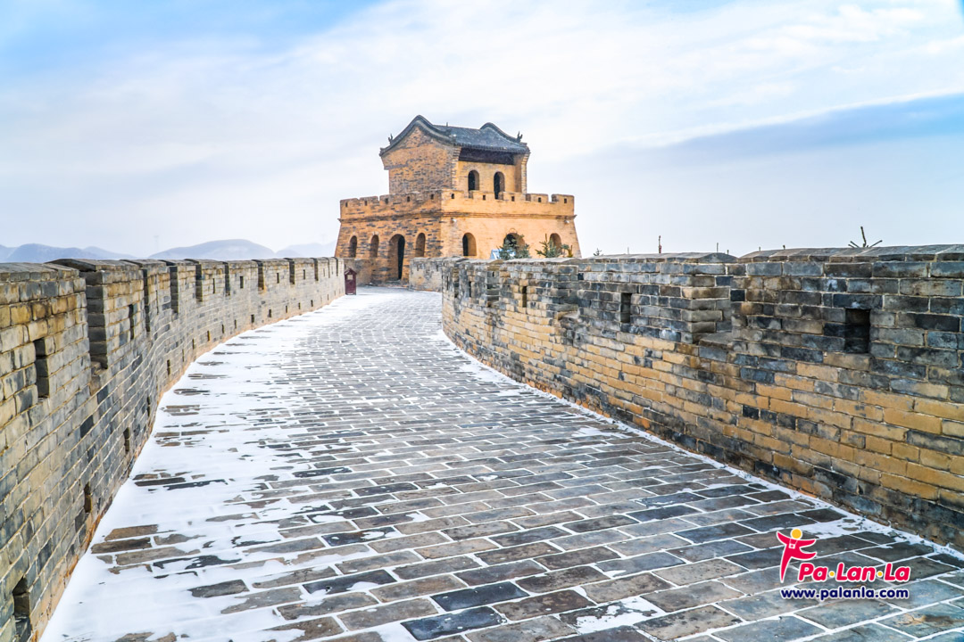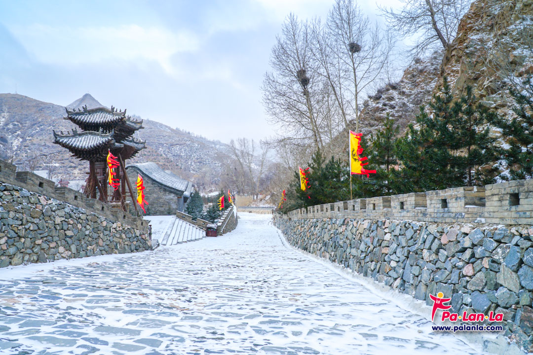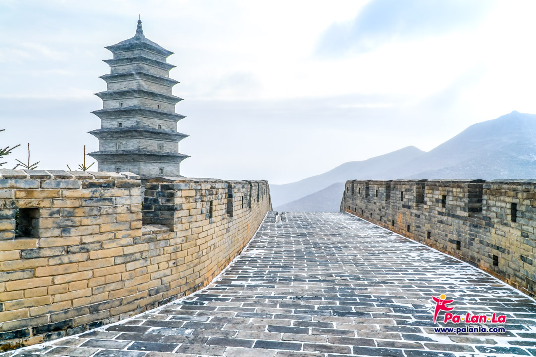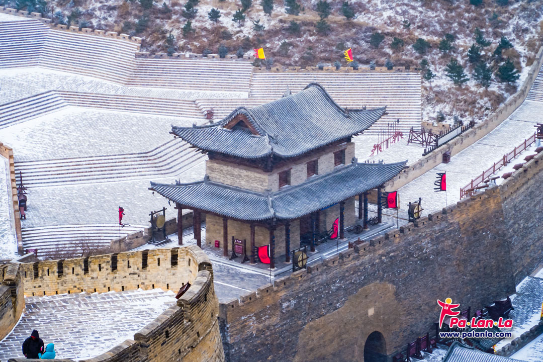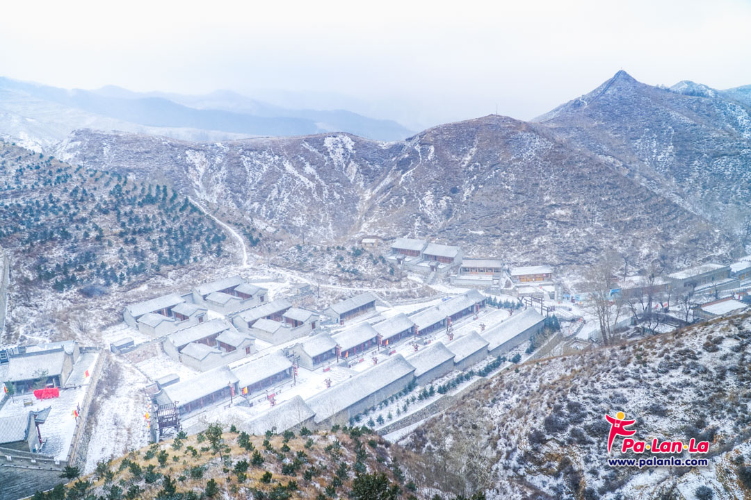 กำแพงเมืองจีนด่านเยี่ยนเหมินกวนในฤดูหนาวกับหิมะที่โปรยปราย