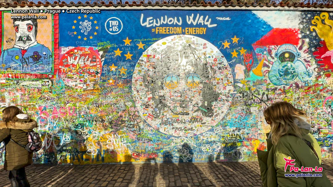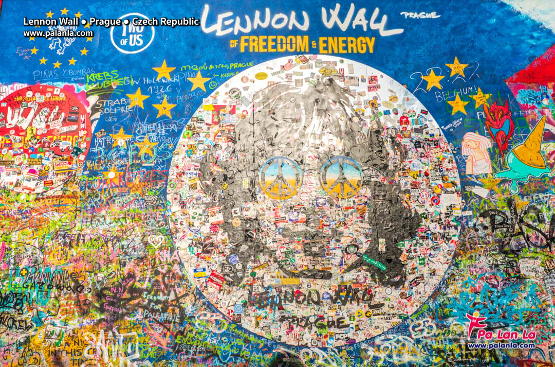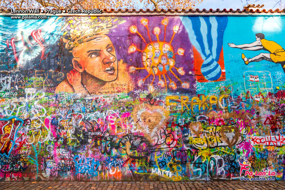 กำแพงเลนนอนถูกปกคลุมไปด้วยกราฟิตี้หลากลวดลายสีสันและข้อความต่างๆ ที่สื่อถึงเสรีภาพและการแสดงออกทางการเมือง