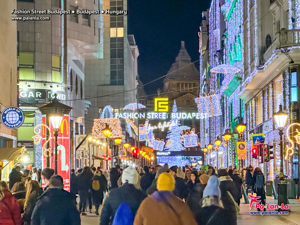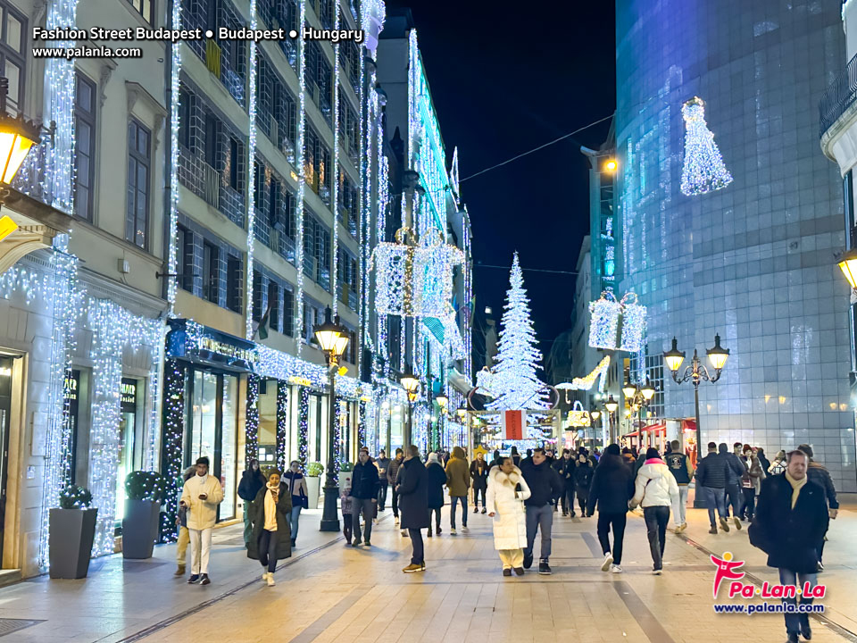 บรรยากาศการตกแต่งรอบๆ ถนนแฟชั่นบูดาเปสต์ในช่วงเทศกาลคริสต์มาส