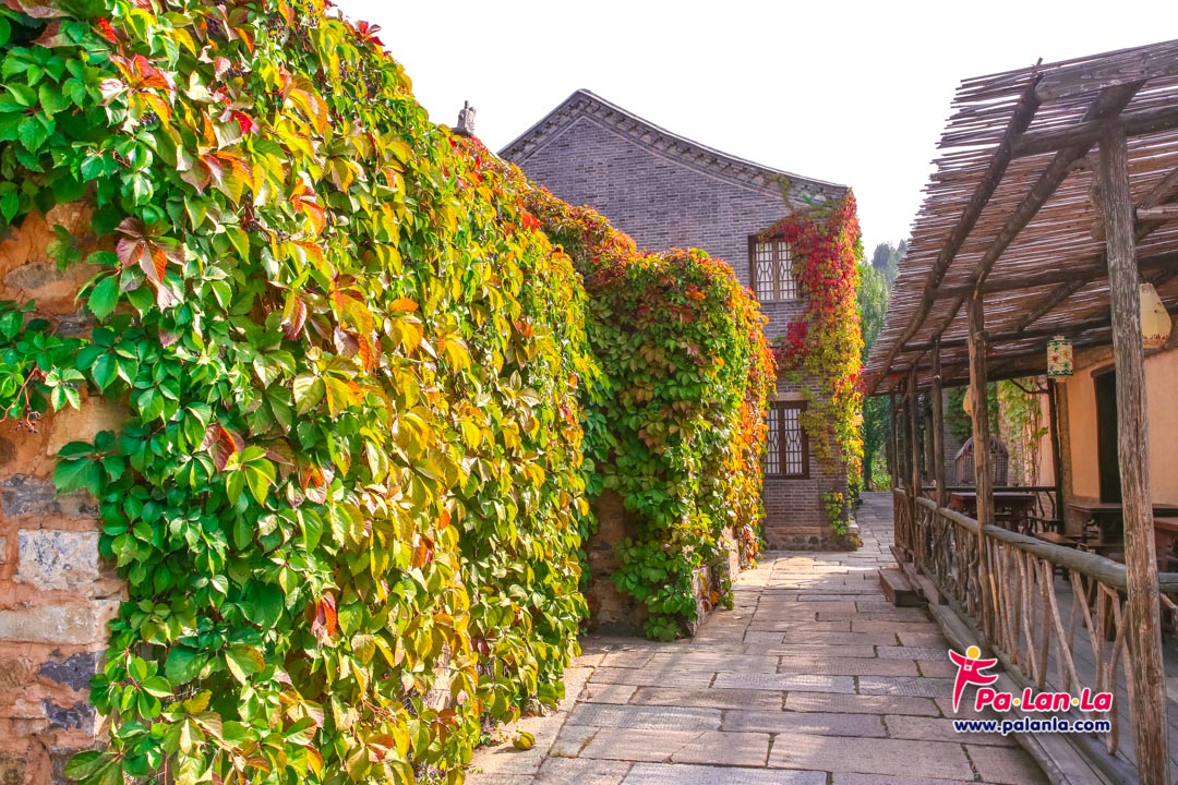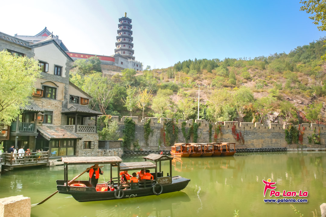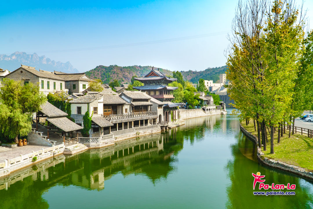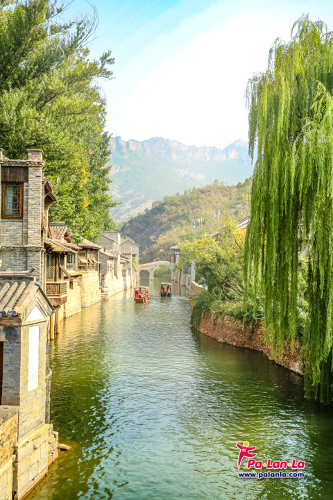 บรรยากาศระหว่างทางเดินผ่านเมืองโบราณริมน้ำกู่เป๋ยสุ่ยเจิ้นสู่กำแพงเมืองจีนซือหม่าไถ