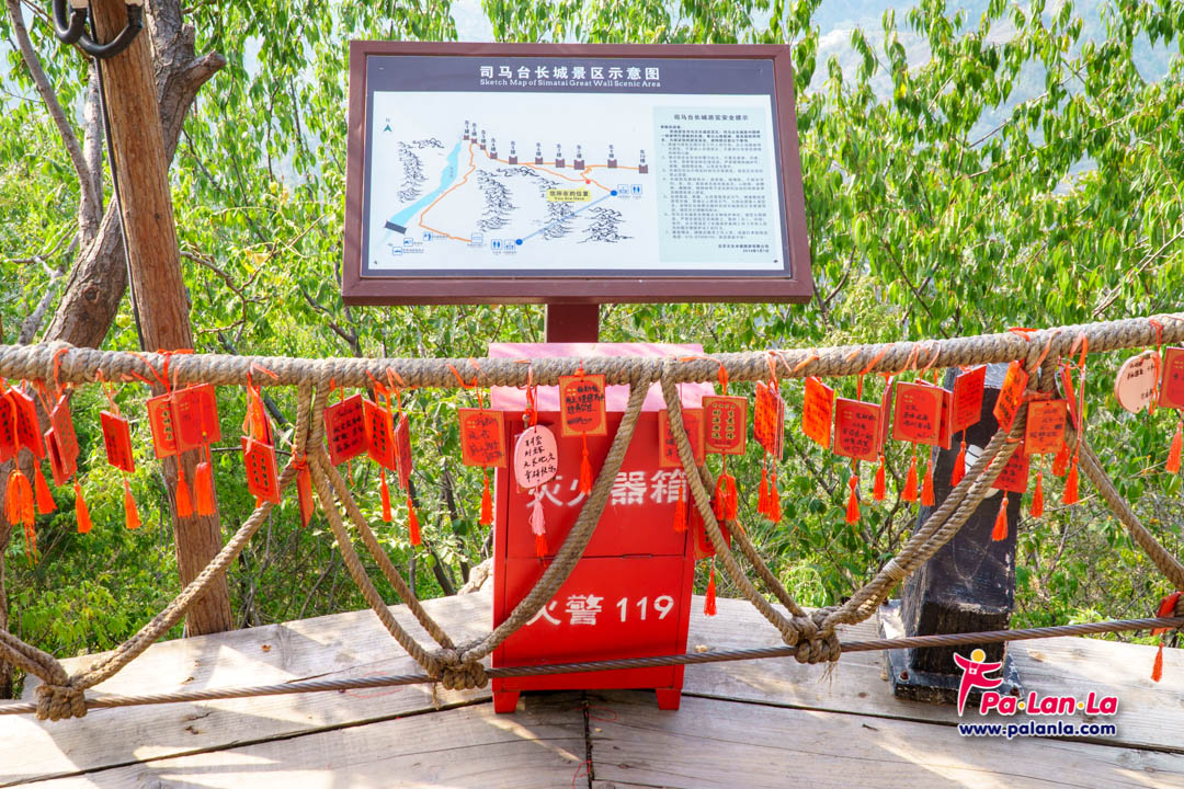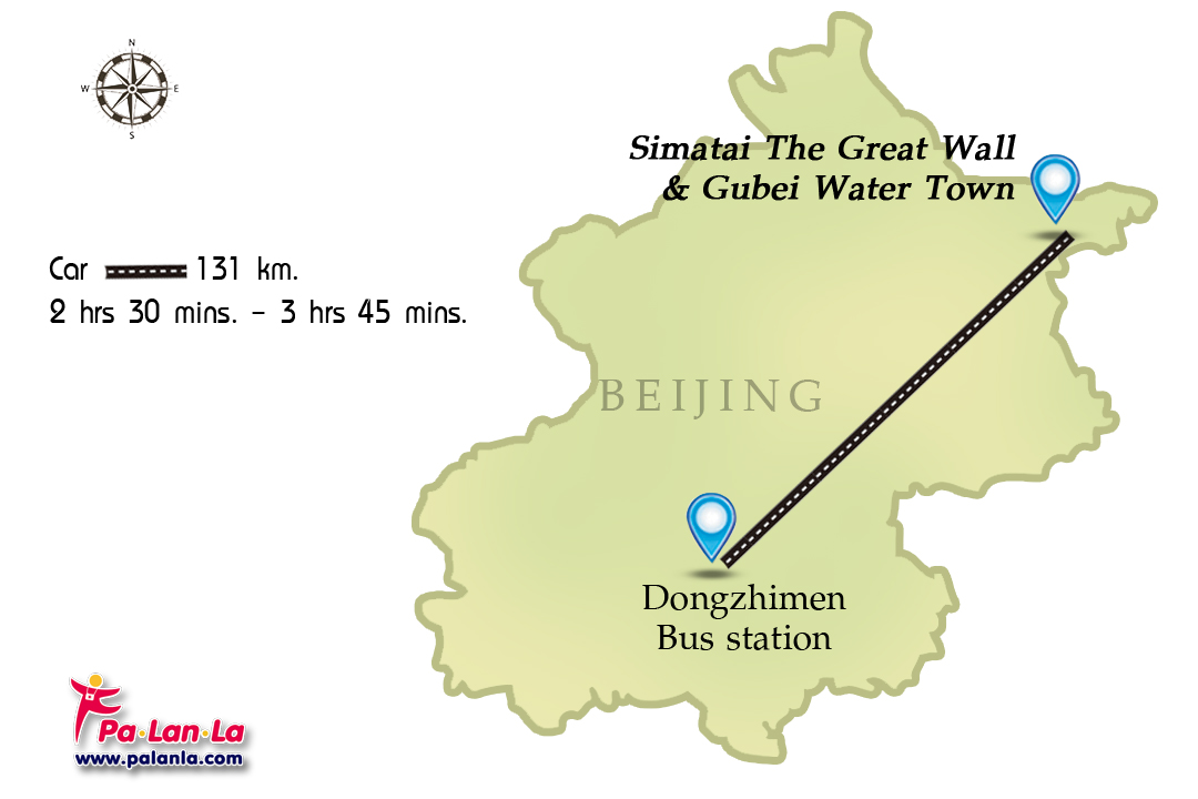 แผนที่แสดงจุดขึ้นรถและระยะห่างระหว่างภายในเมืองจนถึงกำแพงเมืองจีนซือหม่าไถ