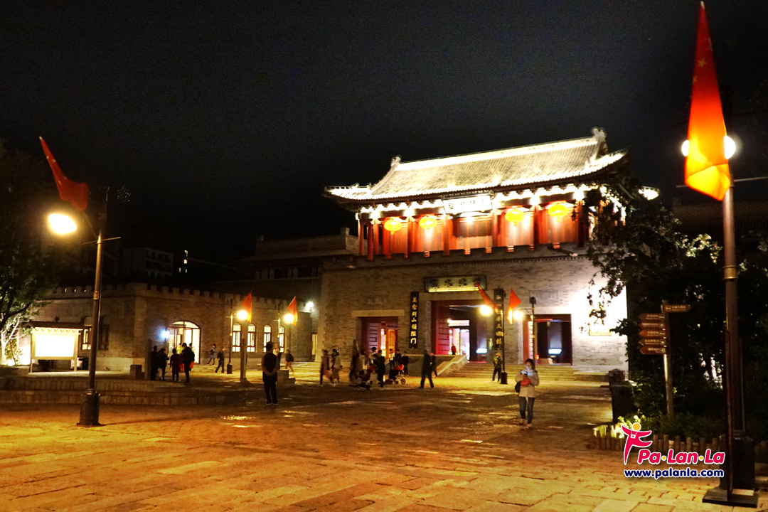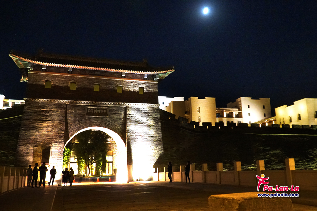 บรรยากาศยามค่ำที่ด้านหน้าบริเวณศูนย์บริการนักท่องเที่ยวกำแพงเมืองจีนซือหม่าไถ