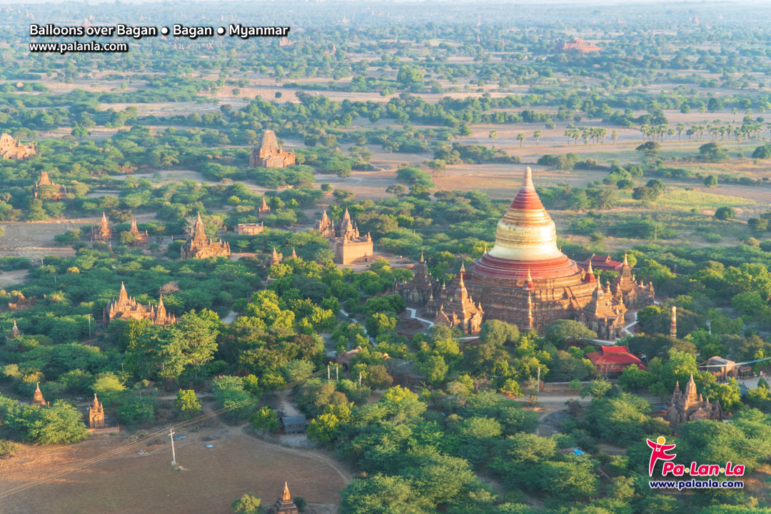 หากมองจากมุมสูงขณะที่ล่องบอลลูนจะเห็นทะเลเจดีย์นับพันวางตัวกระจายอยู่ทั่วพื้นที่ของพุกาม