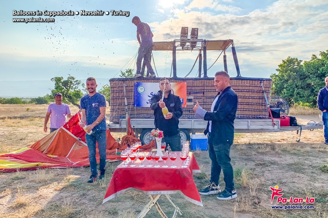 เจ้าหน้าที่เปิดแชมเปญฉลองเมื่อสิ้นสุดกิจกกรมการล่องบอลลูน