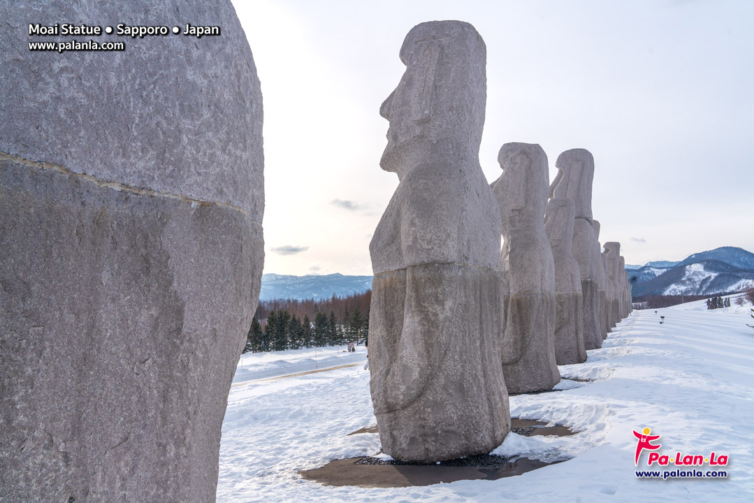 รูปปั้นโมอายในซัปโปโร มีอยู่หลายจุดด้วยกัน หนึ่งในจุดที่มีชื่อเสียงและเป็นที่นิยมของนักท่องเที่ยวตั้งอยู่ใกล้ๆ กับเนินแห่งพระพุทธเจ้า (Hill of the Buddha) ภายในบริเวณของสุสาน Makomanai Takino Cemetery