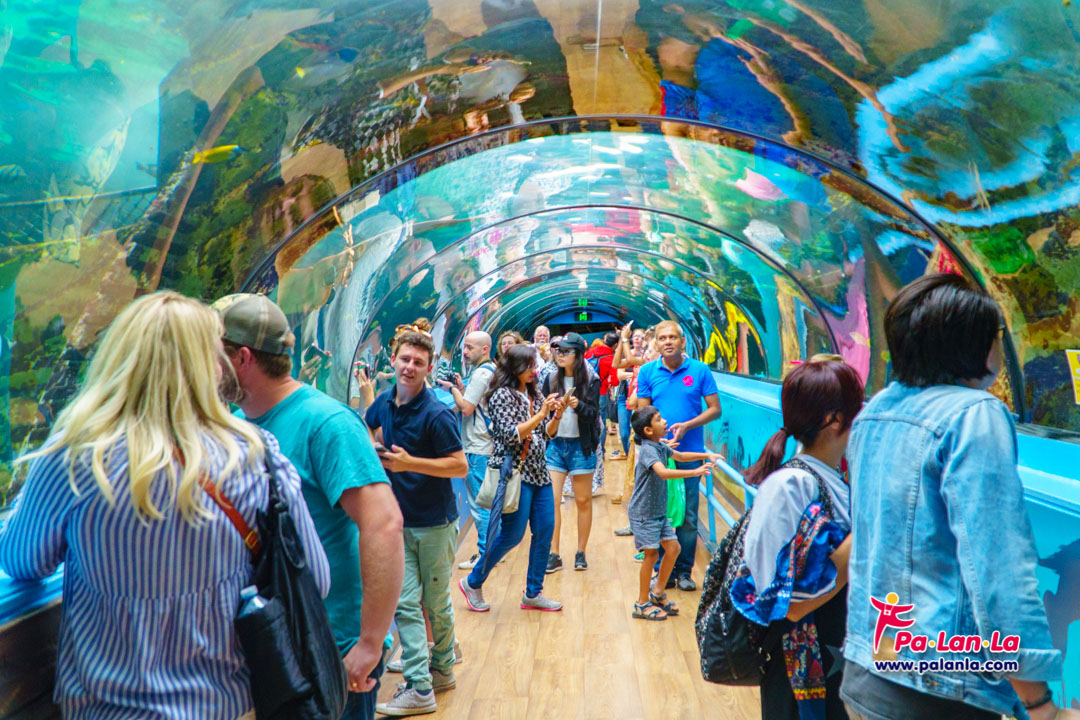 เดินลอดใต้อุโมงค์ขนาดใหญ่ชมบรรดาปลาน้อยใหญ่ว่ายวนเวียนอยู่เหนือศีรษะ