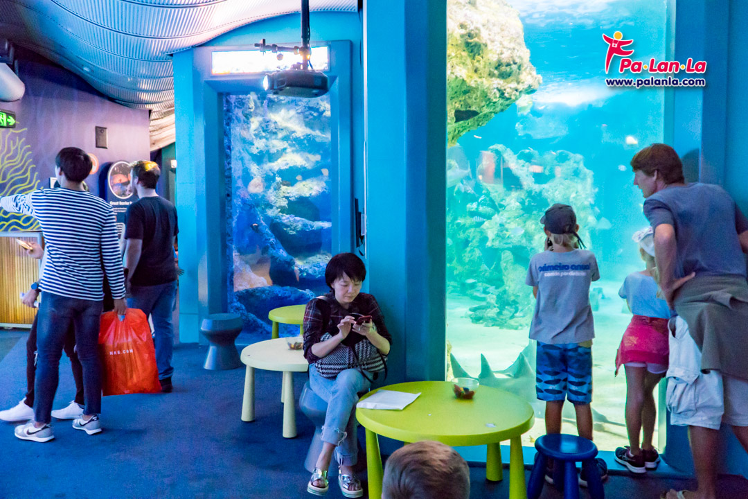Shark Walk และ Shark Valley ซึ่งเป็นอุโมงค์ขนาดใหญ่ที่มีฉลามขาว ปลากระเบนที่ใหญ่ที่สุดในออสเตรเลียมาว่ายวนเวียนอยู่รอบๆ เหนือศีรษะของเรา