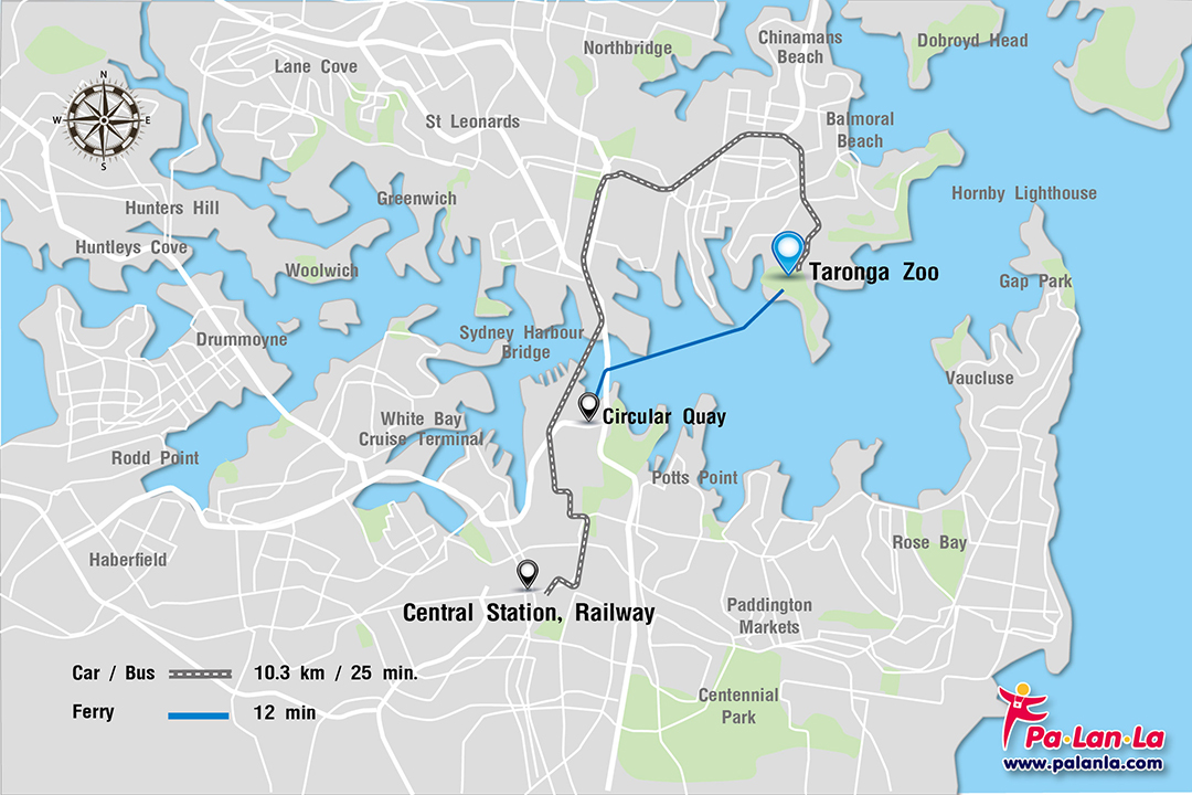 - รถประจำทาง สาย M30 247 228 238 ลงป้าย Taronga Zoo