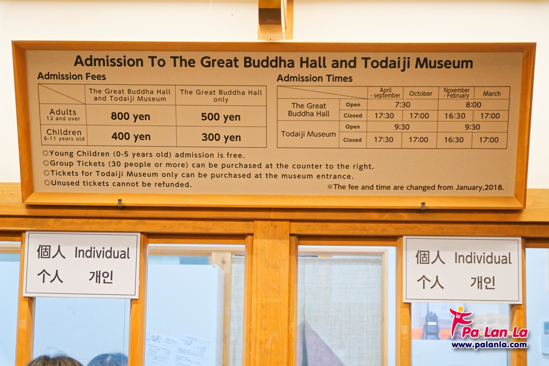 เวลาเปิด-ปิด : วัดโทไดจิเปิดทำการทุกวัน