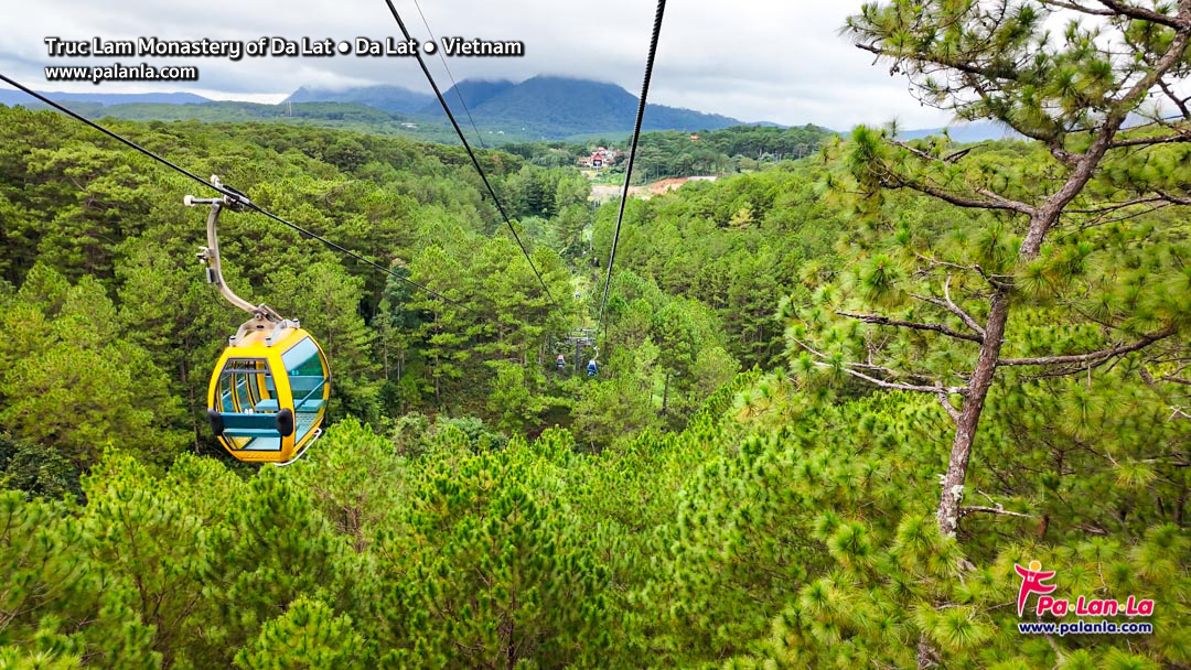โดยทางวัดได้จัดสร้างระบบกระเช้าลอยฟ้า (Cable Car) เพื่ออำนวยความสะดวก สถานีกระเช้าต้นทางจะอยู่ด้านล่างเชิงเขา ใช้เวลาเดินทางประมาณ 15 นาทีขึ้นมายังตัววัด สามารถซื้อตั๋วกระเช้าได้ที่ Robin Hill ค่าโดยสารกระเช้าไป-กลับ ประมาณ 100,000 ดอง หรือประมาณ 150 บาท