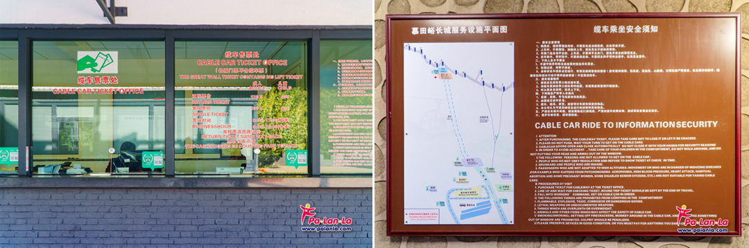 บริการกระเช้าห้อยขาสำหรับขึ้นไปด้านบนกำแพงเมืองจีน ก่อนจะกลับลงมาด้วย Toboggan (หรือที่นั่งสไลด์รางเลื่อนที่ปรับผ่อนความเร็วได้) ซึ่งเป็นอีกหนึ่งวิธีที่รวดเร็วสะดวกสบาย และได้รับความนิยมจากนักท่องเที่ยวที่ต้องการความสนุกสนานและตื่นเต้นระหว่างลงจากกำแพงเมืองจีน