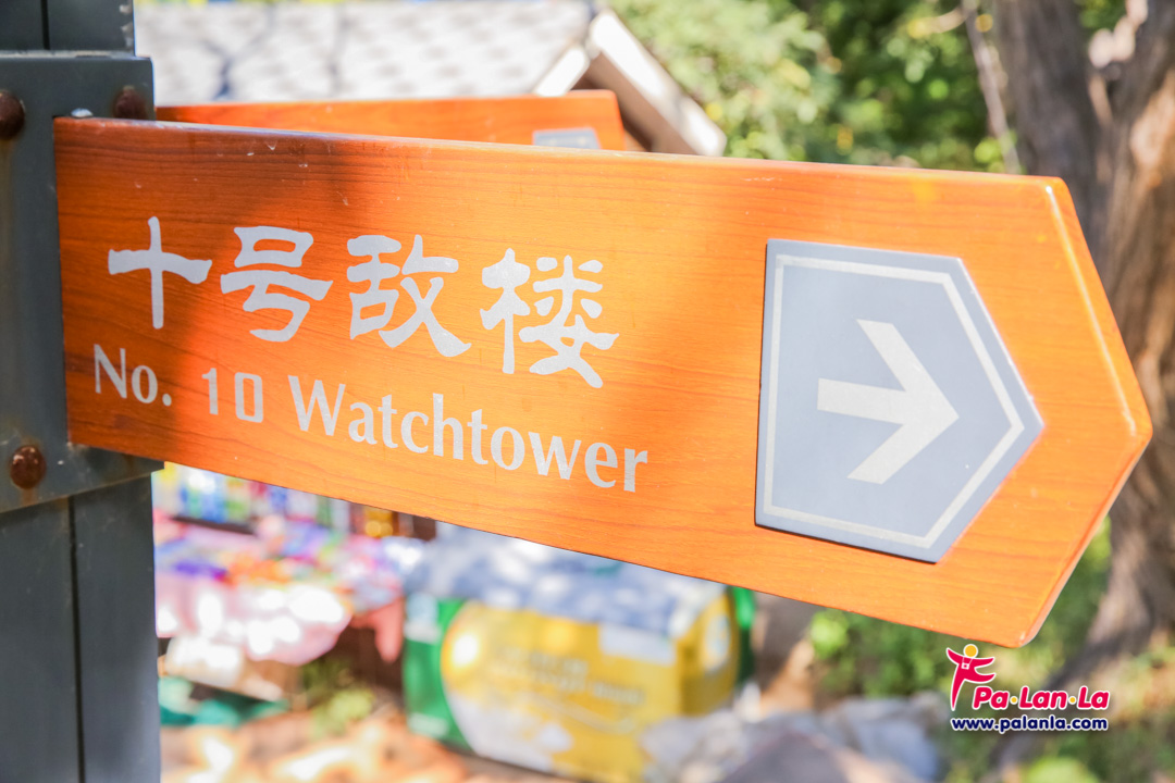 ป้ายชี้ทางไปป้อมสังเกตการณ์บนกำแพงเมืองจีนมู่เถียนอวี้ที่มีอยู่นับสิบป้อม