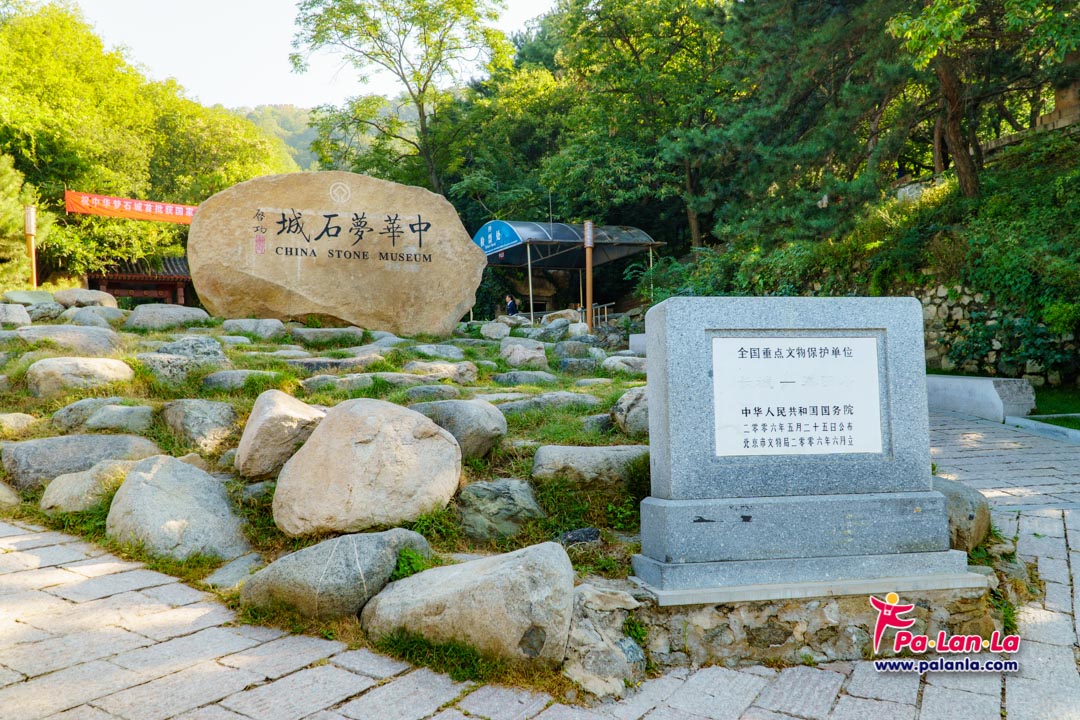 ป้ายด้านหน้าทางเข้าพิพิธภัณฑ์จัดแสดงหินภายในบริเวณกำแพงเมืองจีนมู่เถียนอวี้