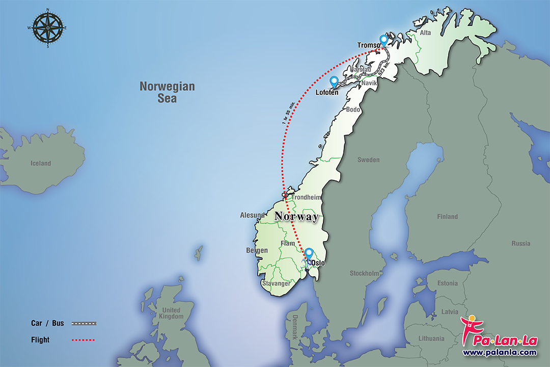นอร์เวย์ (Norway) ดินแดนแห่งฟยอร์ดและขุนเขาที่แสนสวยงาม เต็มไปด้วยเส้นทางท่องเที่ยวมากมายที่พร้อมจะมอบความทรงจำสุดประทับใจให้แก่ผู้มาเยือน การเดินทางจากออสโล (Oslo) สู่ทรุมเซอ (Tromso) และโลโฟเทน (Lofoten) นับเป็นอีกหนึ่งเส้นทางท่องเที่ยวที่น่าสนใจ เพราะนักท่องเที่ยวจะได้เดินทางผ่านภูมิประเทศที่หลากหลาย ตั้งแต่เมืองหลวงที่ทันสมัย ไปจนถึงธรรมชาติอันบริสุทธิ์ของอาร์กติก และหมู่เกาะที่สวยงามราวภาพวาด