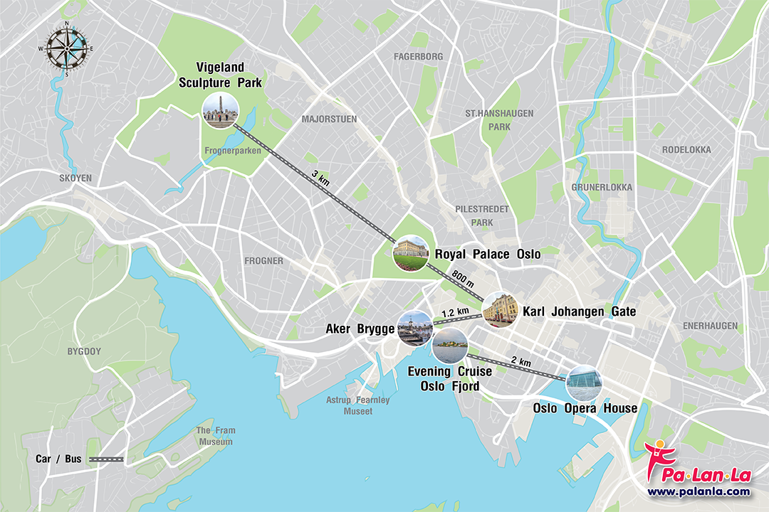 (สวนประติมากรรมวิกแลนด์ (Vigeland Sculpture Park - อาเกอร์ บริกเก (Aker Brygge - คาร์ล โยฮันส์ เกท (Karl Johangen Gate - พระราชวังหลวงออสโล (Royal Palace Oslo - ออสโล โอเปร่าเฮ้าส์ (Oslo Opera House - ล่องเรือชมฟยอร์ดออสโลยามค่ำ (Evening Cruise Oslo Fjord)