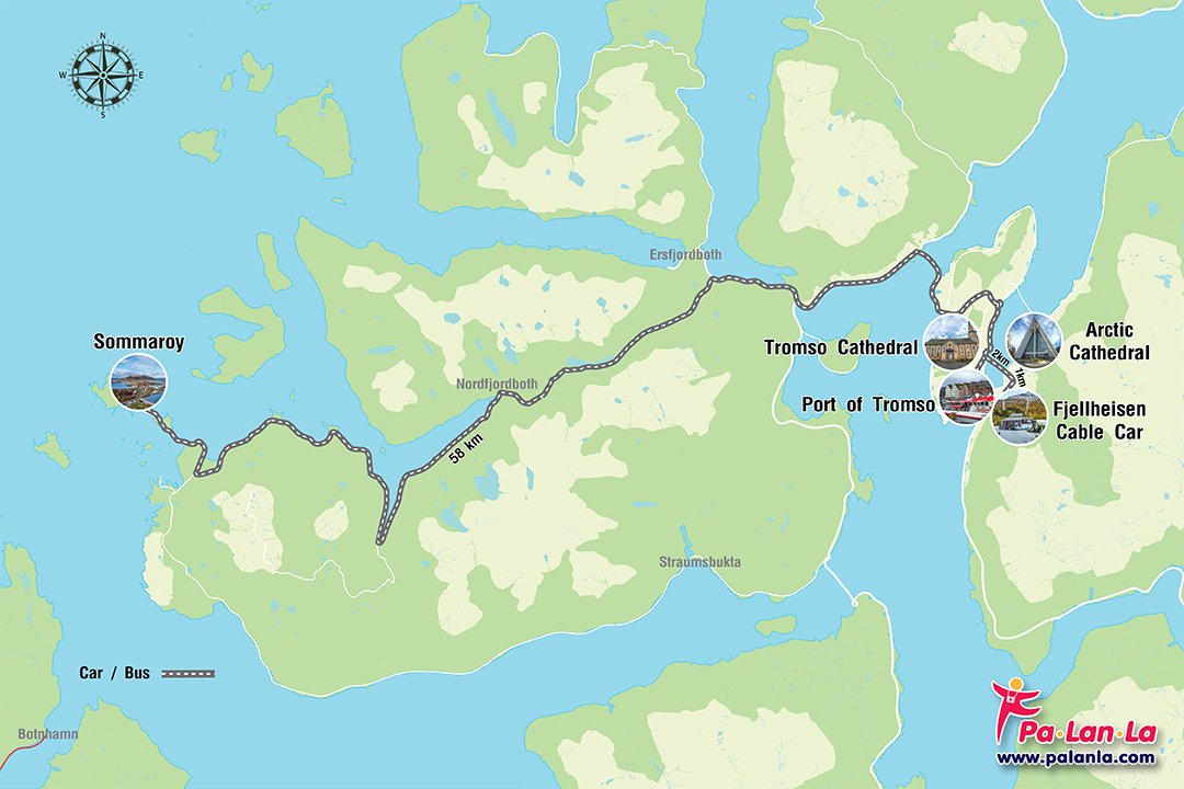 ท่าเรือทรุมเซอ (Port of Tromso) - มหาวิหารอาร์กติก (Arctic Cathedral) - มหาวิหารทรุมเซอ (Tromso Cathedral - กระเช้าไฟฟ้าเฟียลไฮเซน (Fjellheisen Cable Car) - หมู่บ้านซอมมารอย (Sommaroy)