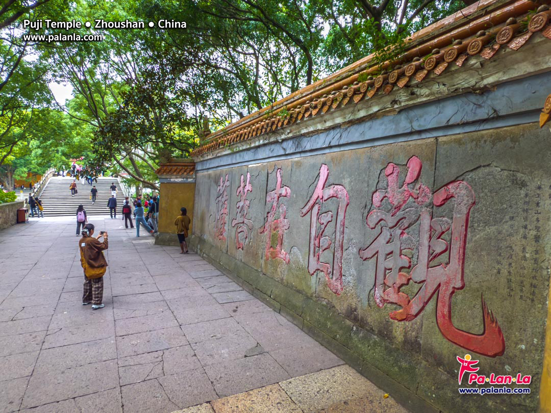 ตัวอักษรภาษาจีนขนาดใหญ่บนกำแพงวัดผู่จี้