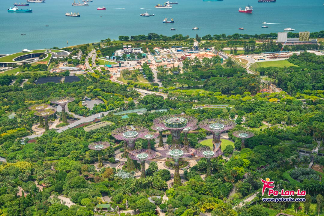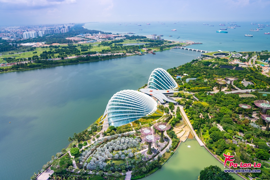 จากจุดชมวิวจะมองเห็น Flower Dome และ Cloud Forest ที่อยู่ใน Gardens by the Bay