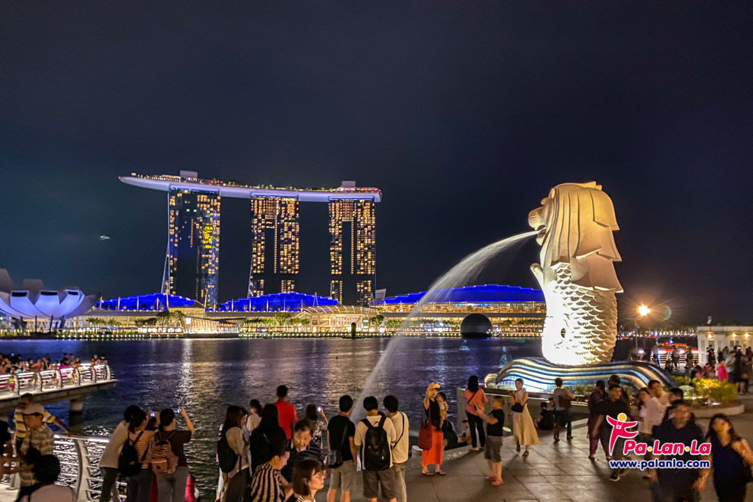 จากเมอร์ไลอ้อนพาร์คสามารถมองเห็นโรงแรมมารีน่าเบย์แซนด์อยู่ข้างหน้า