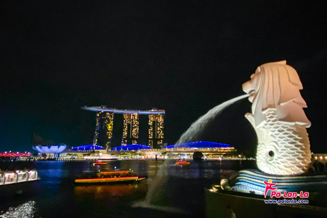 บรรยากาศรอบๆ เมอร์ไลอ้อนในช่วงกลางคืน