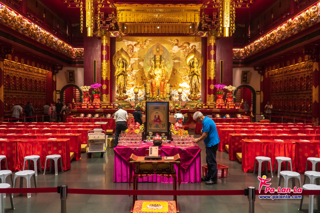 ภายในห้องโถงหน้าแท่นบูชาพระโพธิสัตว์วัดพระเขี้ยวแก้ว