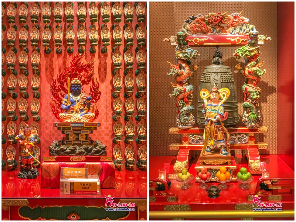 รูปปั้นเทพเจ้า Acala ในศาสนาพุทธนิกายวัชรยาน (ซ้าย) และเทพเจ้านักรบของจีน (ซ้าย)
