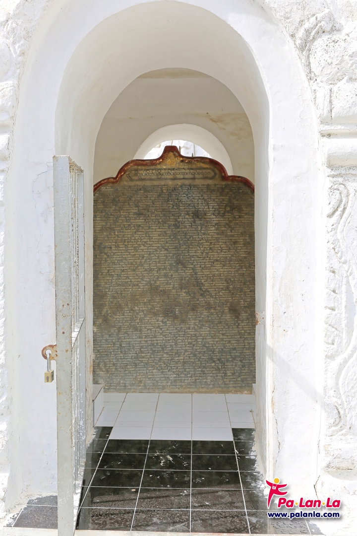มณฑปสีขาวซึ่งเป็นที่ประดิษฐานของแผ่นหินอ่อนที่ใช้จารึกข้อความจากพระไตรปิฏก